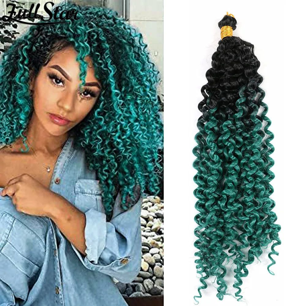 Full Star 14 Inch Water Twist Deep Wave Braiding Hair Natural Hair For Weaving Crochet Braid Ombre Blue African Curls