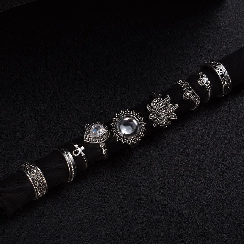 Retro Ethnic-Style Joint Ring Set Of 9 With Bold Gemstone Combinations